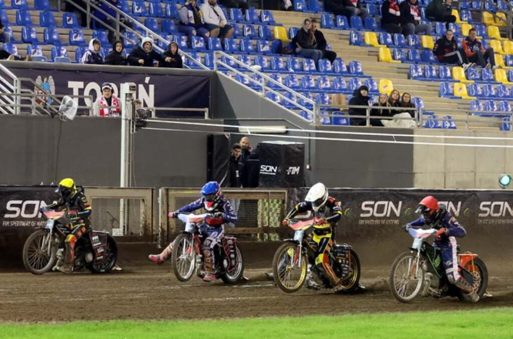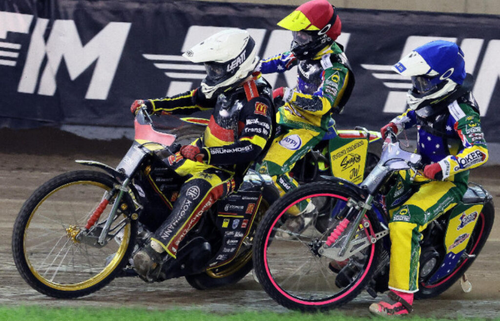 Bei der Fahrerpräsentation zum Speedway der Nationen 2 standen die Deutschen noch am Rand, doch nach 28 Rennläufen bekamen NorickBlödorn und Mario Häusl zusammen mit Hannah Grunwald, die ohne Einsatz blieb, die Goldmedaillen umgehängt. Vorausgegangen war eine beeindruckende Leistung von Blödorn und Häusl, die ihre ersten Läufe gegen Schweden und Australien mit 6:3 abschlossen und damit die Führung vor Dänemark, Australien, Polen und Tschechien übernahmen. Im Lauf gegen Polen, die bei dem Event statt Wiktor Przyjemski den jungen Maksymilian Pawelczak zum Einsatz brachten, konnte Blödornseinen vierten Sieg einfahren und Häusl sich zum wiederholten Mal in den Punkten platzieren, was ein weiteres 6:3 einbrachte. Da die Verfolger Punkte liegen ließen, konnten sich die Deutschen mit einem 7:2 über die Letten zur Mitte des Rennens sogar etwas absetzen.